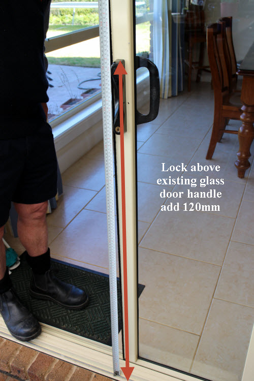 This measurement needs to be a minimum of 125 mm above the top of your existing solid door lock (1.8) or 60 mm below the bottom of your existing door lock handle (1.9).